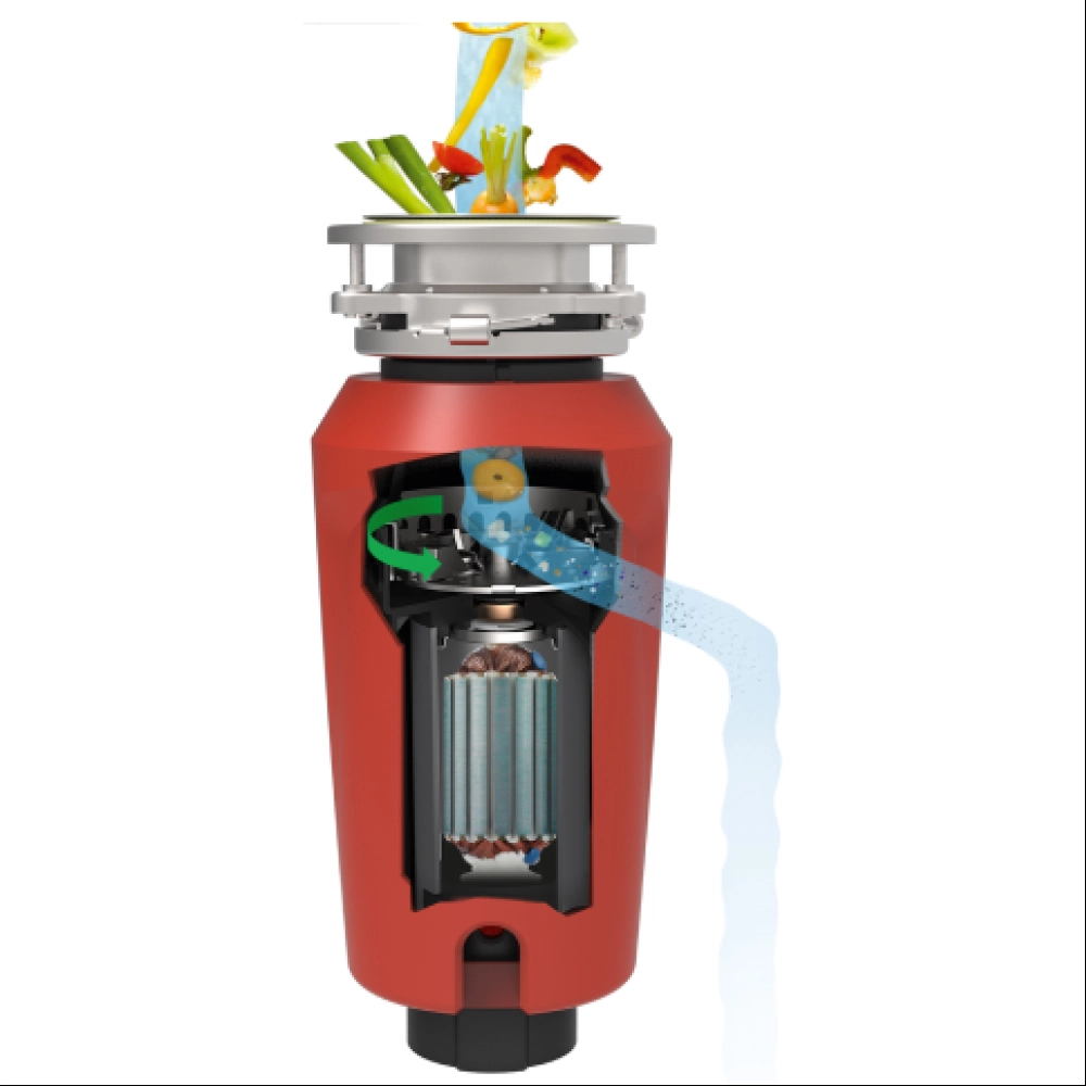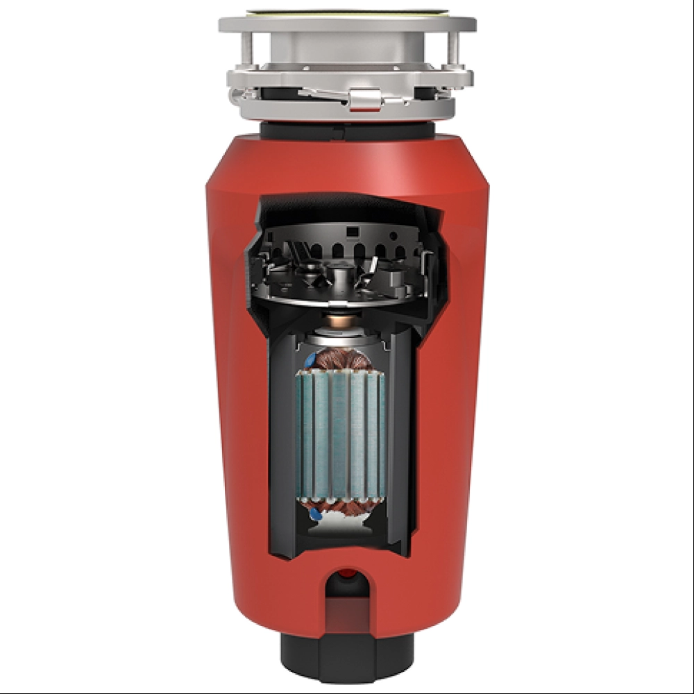 Диаметр подключения составляет 3,5 дюйма, что соответствует стандартным размерам кухонных моек. Габаритные размеры устройства — 160 мм в диаметре и 386 мм в высоту, что позволяет легко интегрировать его в кухонную мойку.